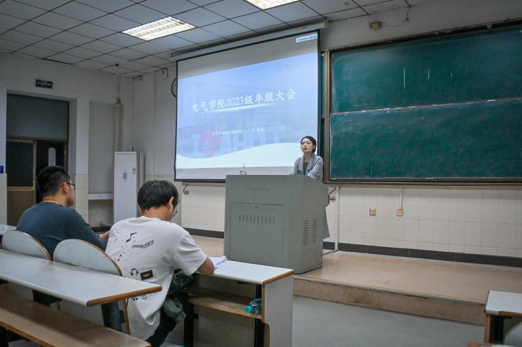 在秀山校区阶教203组织召开2023级秋季学期年级大会。2023级辅导员及学生参会,会议由张悦作专题分享。