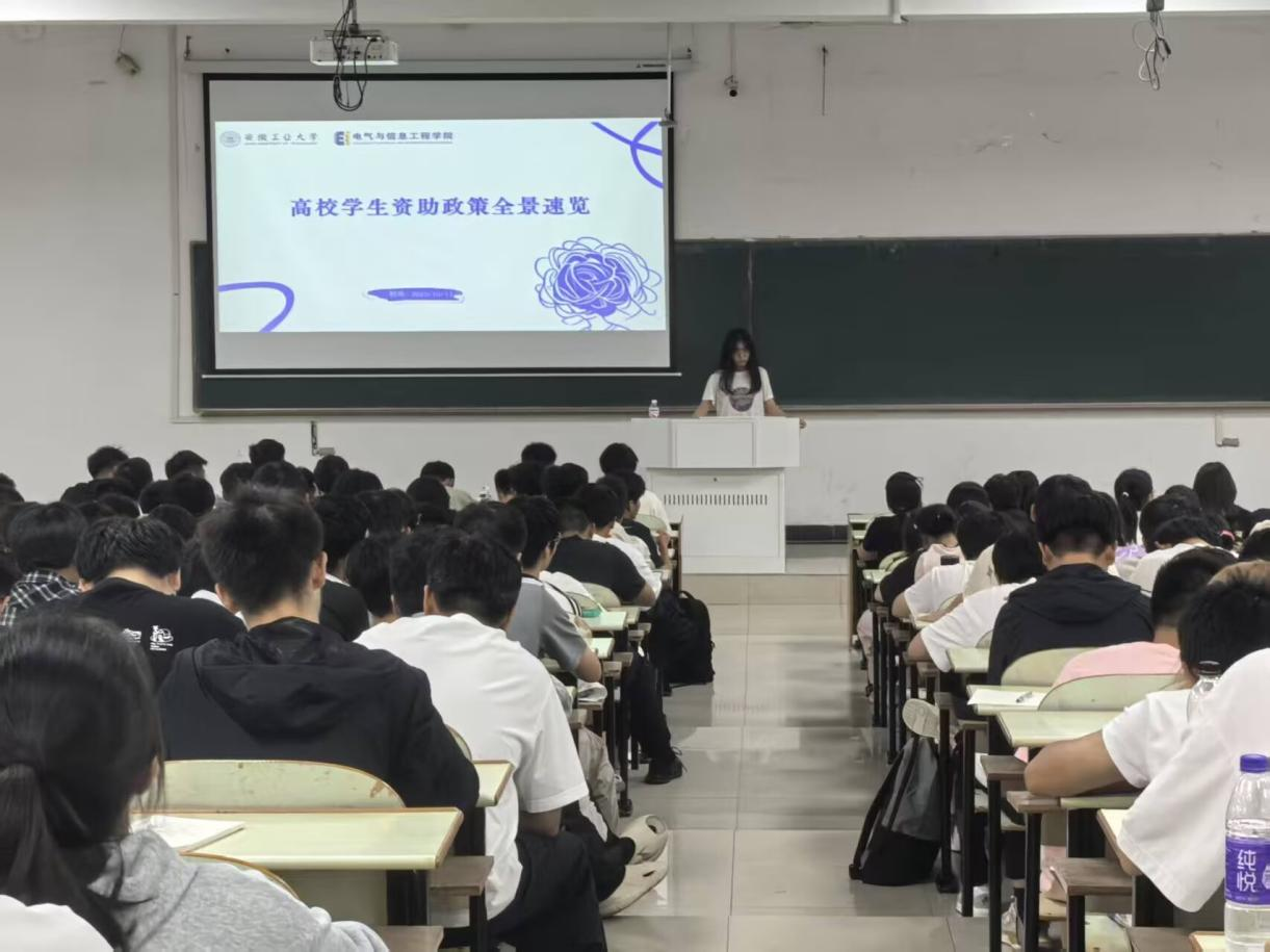 分别在佳山校区和秀山校区组织开展以“政策引航,学海无忧”为主题的资助政策宣讲。宣讲团围绕国家奖学金、国家励志奖学金、国家助学金、国家助学贷款、服兵役国家教育资助、家庭经济困难学生认定等内容,详细解读了各项资助政策的申请条件、申请程序、注意事项、认定标准、评议制度等,并结合案例资料引导电气学子树立正确消费观,杜绝攀比,践行俭朴生活作风。