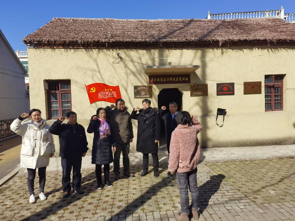 1月13日,实验中心党支部开展“追寻总书记足迹 倡导生态优先绿色发展,探含山渡江战役野战医院旧址 重温入党誓词”党员教育活动,支部党员先后来到薛家洼生态园、渡江战役后方野战医院旧址,瞻仰革命先烈、重温入党誓词。