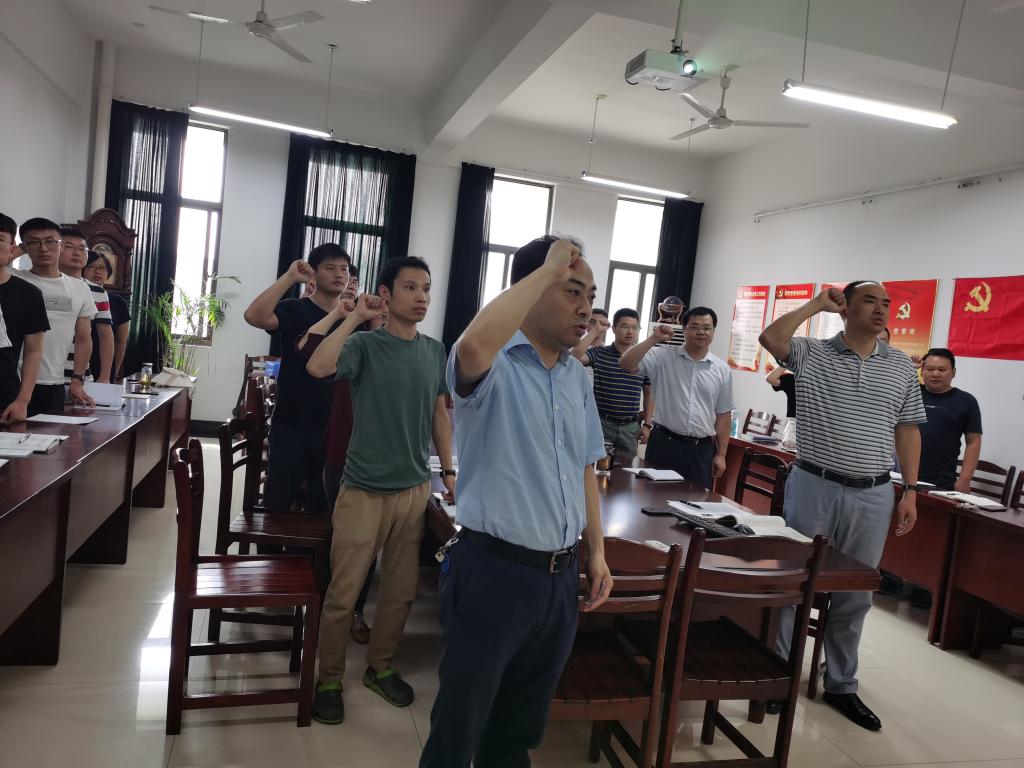 党委副书记、院长王兵的带领下,面对党旗,庄严宣誓,重温入党誓词。王兵在活动中强调,作为一名共产党员,要不断提升自己的精神境界,知史爱党、知史爱国,充分发挥共产党员的先锋模范作用,要不断坚定理想信念,聚焦立德树人根本任务,在新时代展现新担当新作为,要按照学校要求扎实做好成人动漫