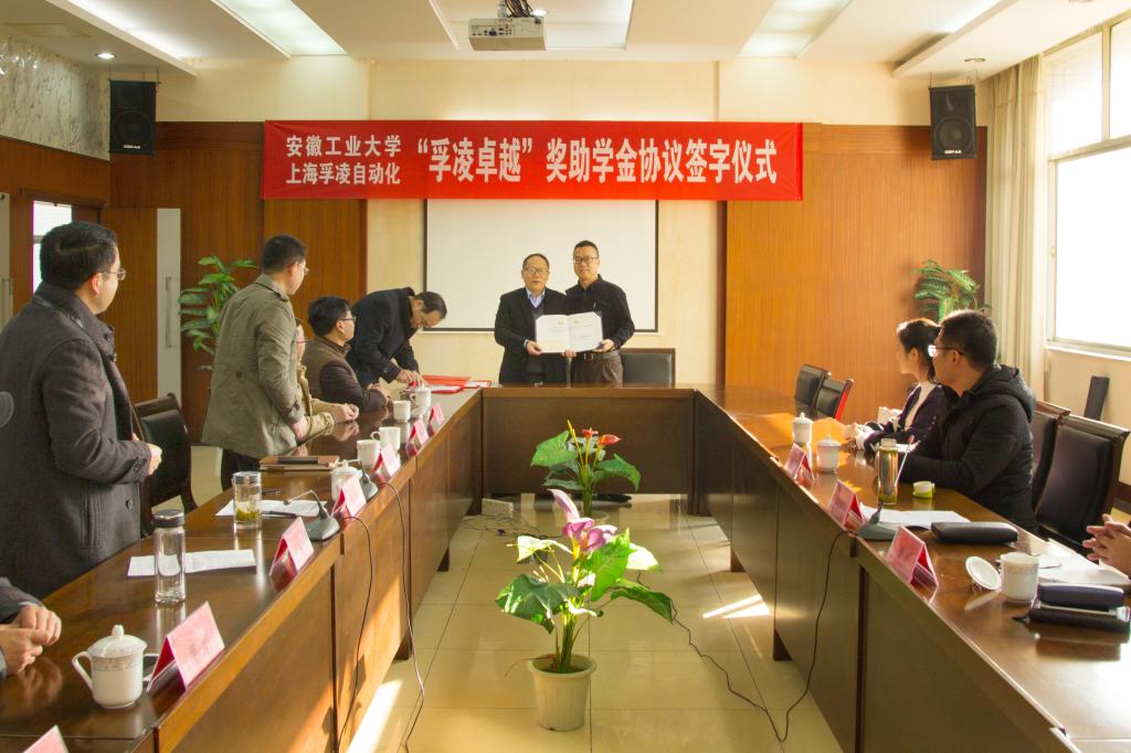 1124日上午,安徽工业大学上海孚凌自动化控制系统有限公司“孚凌卓越”奖助学金捐赠协议签字仪式在佳山校区会议中心举行。副校长葛芦生出席仪式并讲话。孚凌自动化公司董事长彭正伟、财务总监杨军,我校教育发展基金会秘书处负责人和电气成人动漫 党政领导参加仪式。