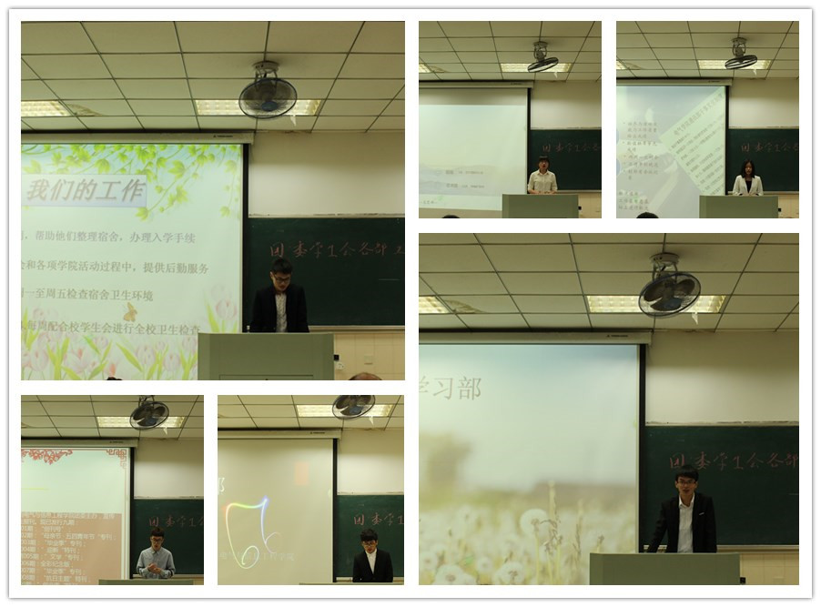 大会在主持人热情洋溢的致词中拉开序幕。团委副书记胡聪聪率先发言,结合自己三年来的学生会工作她以学生会普遍存在的“三类人”向在座同学传递了学生会工作、专业学习、个人生活三者关系的处理方法,学生会工作经验以及大学生活的心得体会。接着,学生会15个部门代表紧紧围绕围绕部门建设、特色活动、心得体会三个板块先后上台做汇报展示。在汇报过程中,各部门精心准备,紧密结合部门特色展开汇报,充分展现了成人动漫 团委学生会同学昂扬饱满的精神风貌。