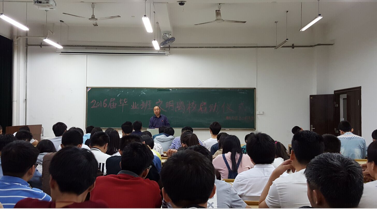 于2016年5月27日在电气楼112召开2016届毕业生文明离校布置会。出席本次会议的有院党委副书记、副院长郭宏,12级辅导员徐悦、尚全,2016届主要学生干部。