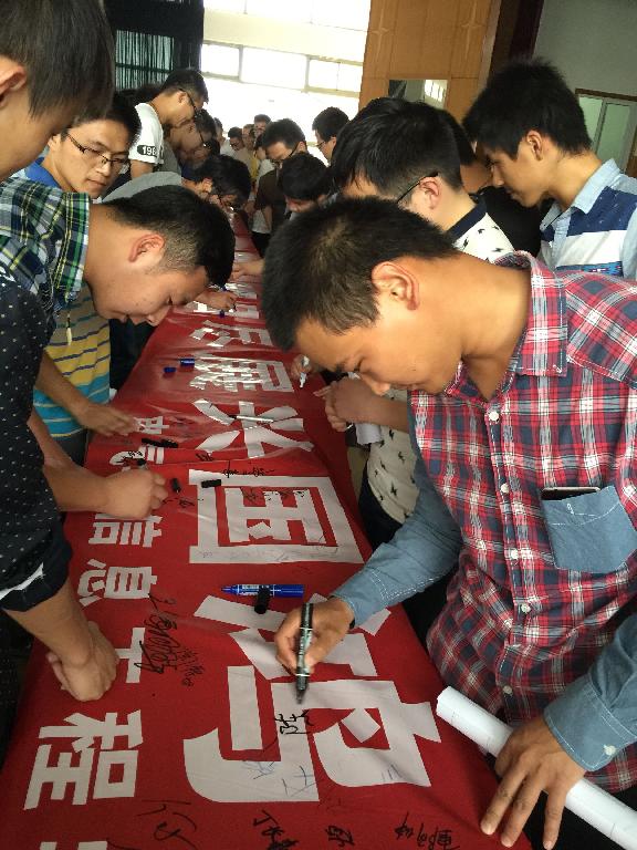 在会议的最后,同学们纷纷在倡议横幅上签字承诺,会议取得圆满成功。