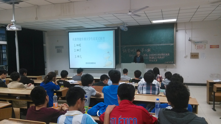 2014年4月24日,为了丰富学生课外生活,提高学生综合素质而成立的“能贤讲坛”在尚全老师的主持以及电信全体同学的积极参与下在教北303成功举办第二期。