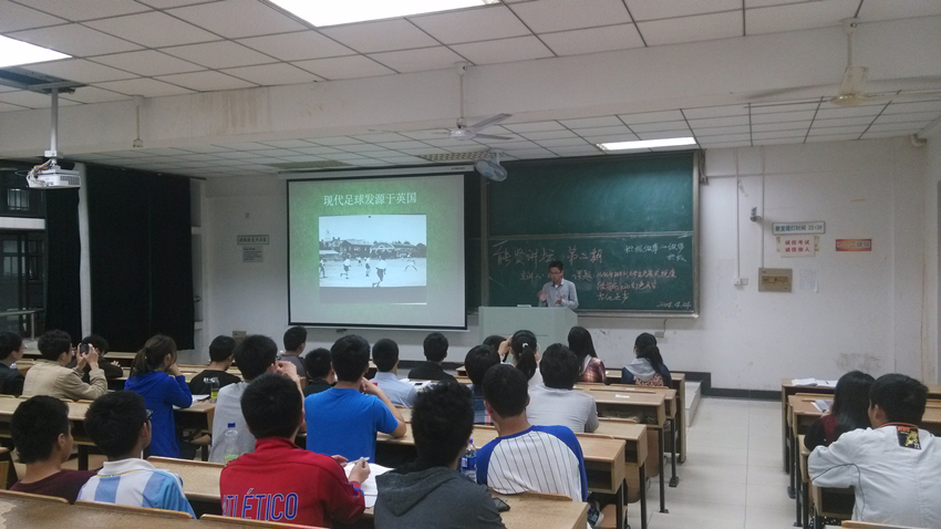 接下来,气3班的马志强的“绿茵场上的幻色天空”更是让大家领略到了足球的独特魅力。在一页页图文并茂的精美PPT、一段段短小精悍的影片加上富有激情的演讲,汉代的蹴鞠讲到现代足球,从比赛规则到国际重要赛事,从球迷到“国足”,他希望国人给国足一点包容和时间。马志强的演讲让大家了解了足球,体会了一把“不疯狂,不球迷”,感受到了足球的魅力,同时更加激起同学们对生活的热爱,赢得了全场热烈的掌声。