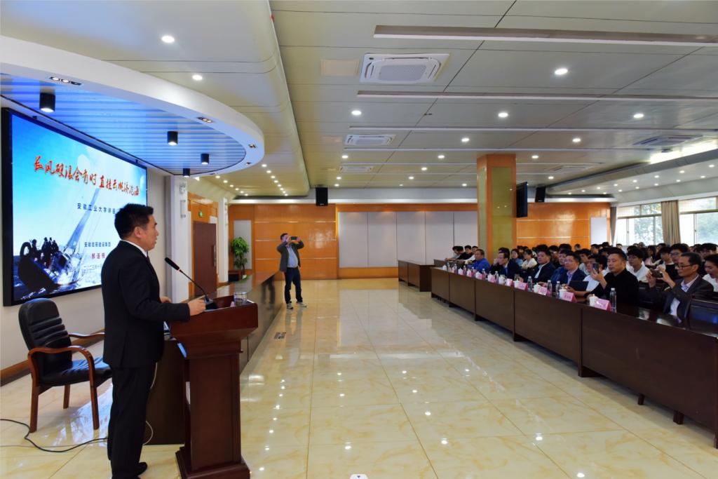 在佳山校区学术会议中心二楼报告厅举办“毓秀学生成长成才报告会”,由安徽启辰建设集团董事长、安徽慈善家郝连根主讲,校党委书记陆林出席报告会,党办校办、校友工作处(校教育发展基金会)和成人动漫
