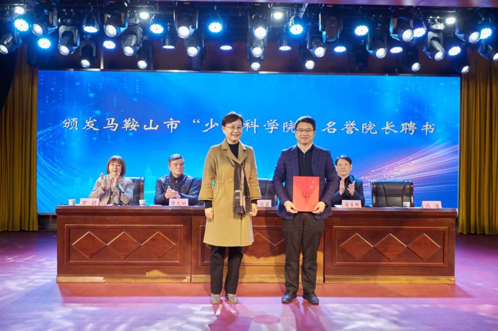 ”名誉院长聘书。沈浩表示将通过开展科技培训、科技普及、科技实践、科技竞赛等活动,为广大青少年参与科技创新搭建更广阔的舞台;希望少年科成人动漫