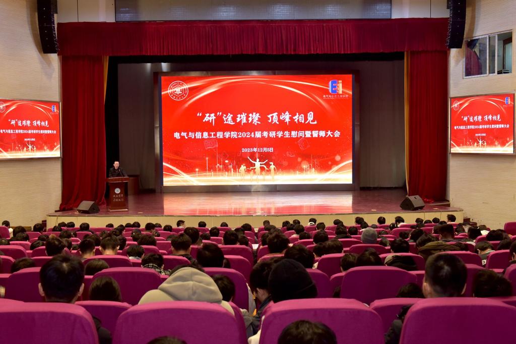 全体老师们的祝福。他分别从国家、学校、大学生自身科学发展三个角度阐释考研是人生的重要选择,是同学们对理想的追求,更是勇气的体现,意志的磨练。他指出作为与新时代同向同行的青年一代,同学们要坚定理想信念,始终心怀“国之大者”,涵养“大我”情怀,2024届考研学生正处于冲刺的关键期,希望同学们把个人命运同国家和民族的命运紧密相连,积极备考、把握机会,勇攀高峰。