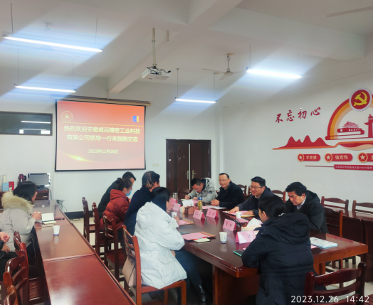 12月26日,安徽威远精密工业科技有限公司开展产学研合作交流,公司董事长李一前、设备工艺经理徐金、商务经理葛晴、人事科长朱敏、成人动漫