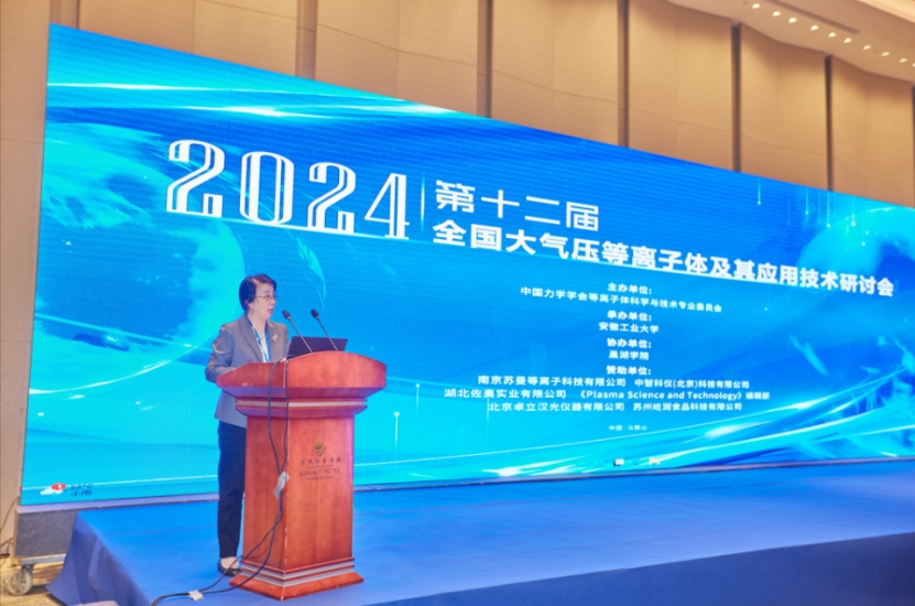 宋远红代表中国力学学会等离子体科学与技术专业委员会致辞, 向各位专家学者的莅临表示欢迎,向承办单位和大会组织委员会的辛勤付出表示感谢。她指出近年来大气压等离子体基础与应用技术的蓬勃发展,新的研究成果不断涌现,新的应用场景不断拓展,新的合作机会不断呈现。本次研讨会旨在搭建一个高水平的学术交流平台,促进大气压等离子体技术的创新与应用,推动相关领域的科技进步和产业发展,为构建绿色、和谐、可持续发展的未来贡献力量。