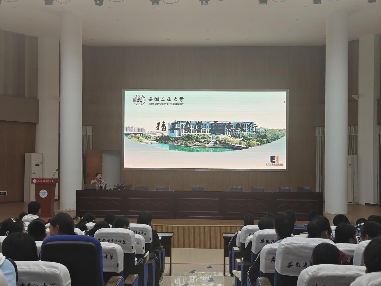 党委副书记、纪委书记、副院长李克明、测控系主任李丹教授及辅导员蒋安东一行赴安徽省青阳中学开展招生与科普知识宣讲活动,青阳中学校领导、安工大99届校友吴俊及高中学生代表参加。