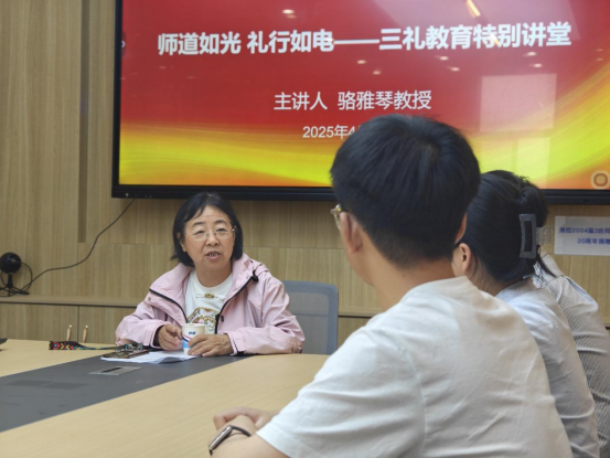 举办了“师道如光 礼行如电——三礼教育特别讲堂”。特邀退休教师、优秀教育工作者骆雅琴教授担任主讲,部分学生党员代表参加学习交流。本次讲座以“立德树人守初心、知行合一育新人”为主线,为成人动漫