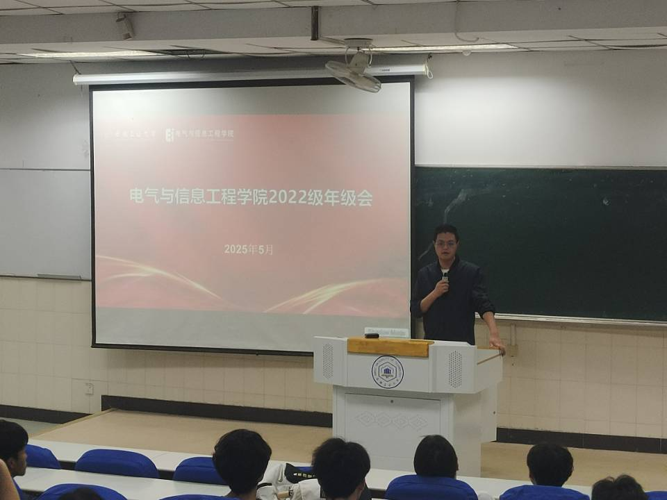 在秀山校区阶梯教室102召开2022级本科生年级会。2022级辅导员李修正、甘如美江、杨恒基出席会议,全体2022级本科生参加。