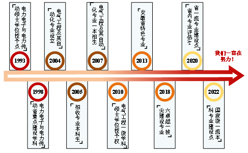 1998年,“电力电子与电力传动”学科被确立为安徽省重点建设学科,是安徽省属高校中最早获批学位点的单位之一。
