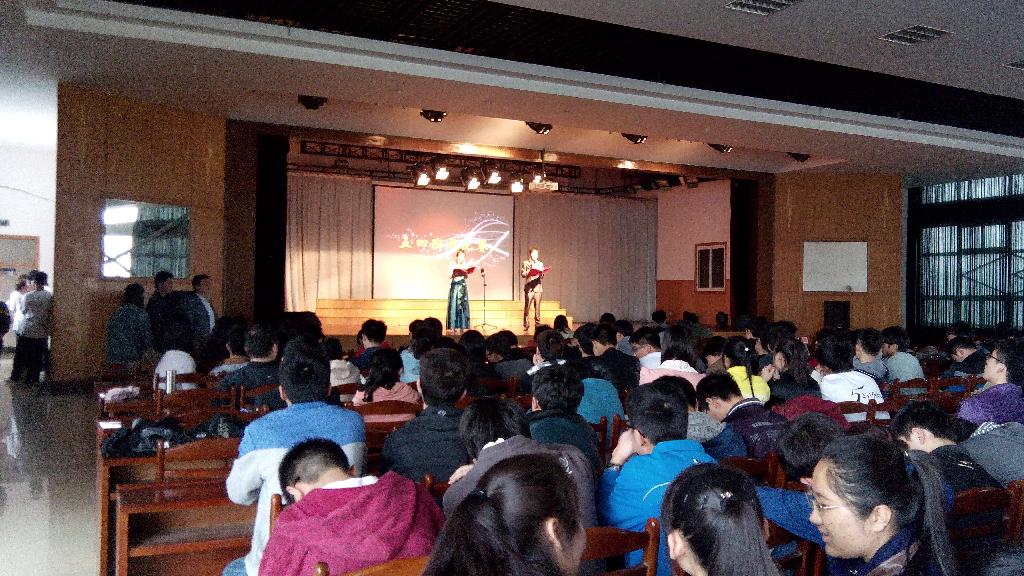 于4月21日下午在大学生活动中心举办“五月的花海”班级合唱比赛。院党委副书记,副院长郭宏,全体辅导员、学生会干部以及2013级的全体同学观看了比赛。