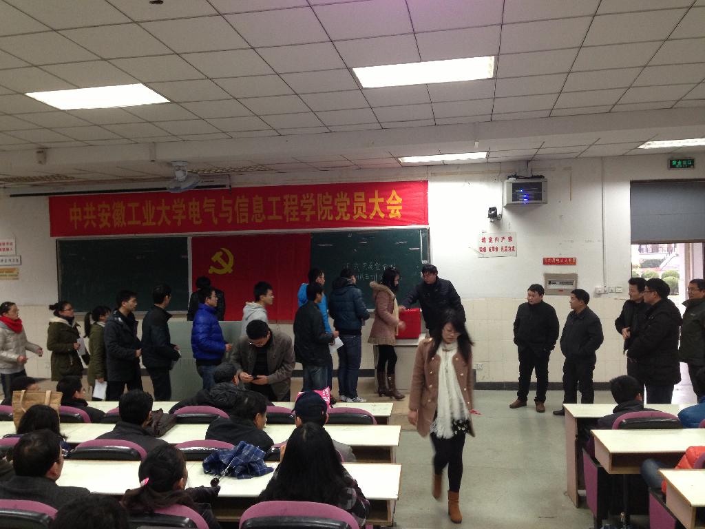 在东教一阶102教室召开党员大会,选举电气信息成人动漫