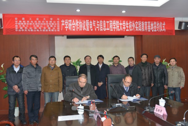 大学生校外实践教育基地签约仪式在我校佳山校区会议中心举行,马鞍山市经济和信息化委员会副主任王黄来,安徽皖南电机股份有限公司等五家知名企业的领导,我校副校长葛芦生、教务处等相关职能部门负责人,电气成人动漫