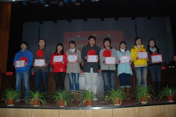2010-2011学年度学生评奖评优表彰大会在东区新大学生活动中心隆重召开。校就业指导中心黄勇主任,组织部王俊副部长,学工部季爱华副部长,校团委窦贤琨副书记,电气信息成人动漫