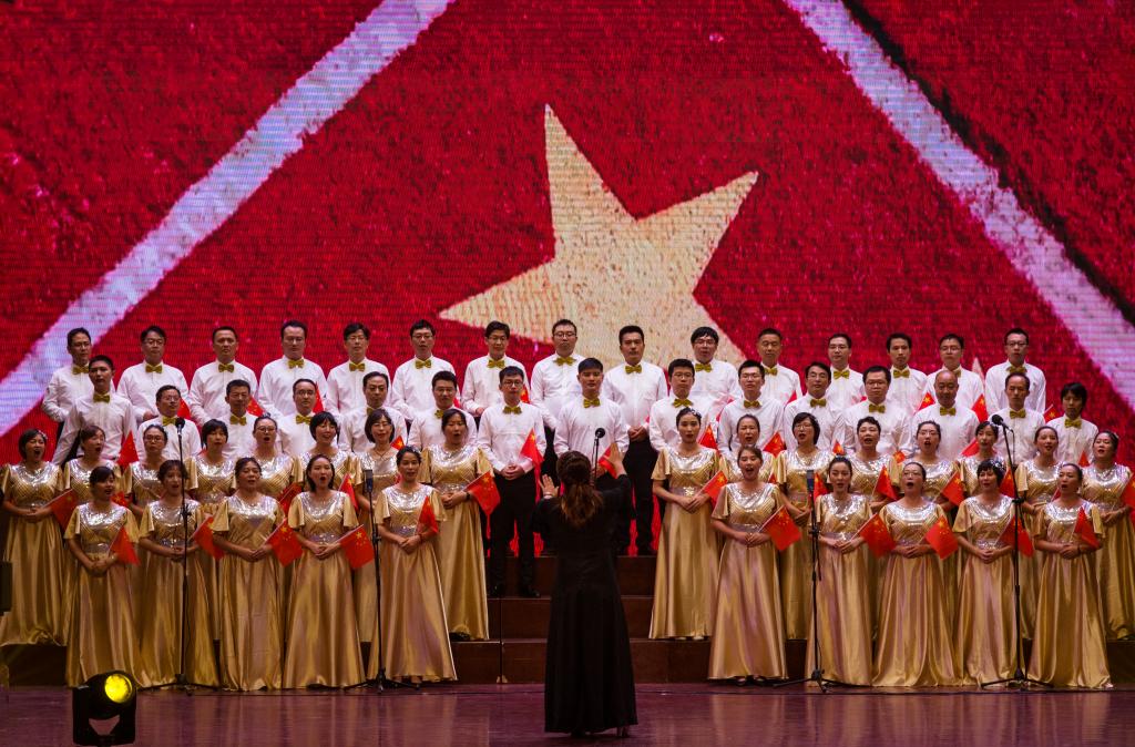 来自全校各基层分工会组成的21支合唱队1000多名教职员工齐声歌唱,祝福祖国。比赛现场灯光璀璨,每一名参赛者都面带笑容、昂首挺胸,用自己最精神、最热情的姿态歌唱着祖国,台下观众也深受感染。赛前,电气成人动漫