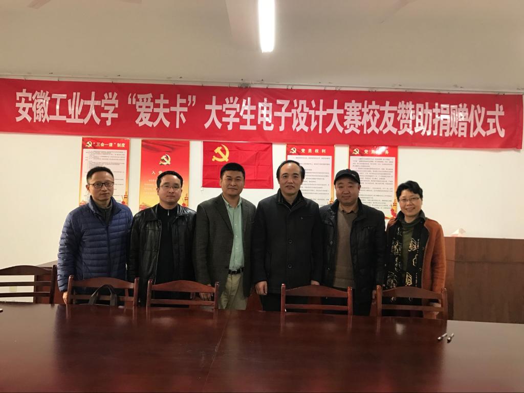报告会后,在电气楼会议室举行了安徽工业大学“爱夫卡”大学生电子设计大赛赞助捐赠仪式,深圳市爱夫卡科技有限公司总经理姚勇、学校校友工作处处长单桂峰、成人动漫