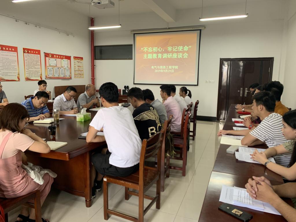 党委召开“不忘初心、牢记使命”主题教育调研座谈会。院党委书记叶凤华、院长王兵、院党委副书记郭宏、各年级辅导员以及来自各年级的15名本科生、研究生代表参加了会议。会议由郭宏主持。