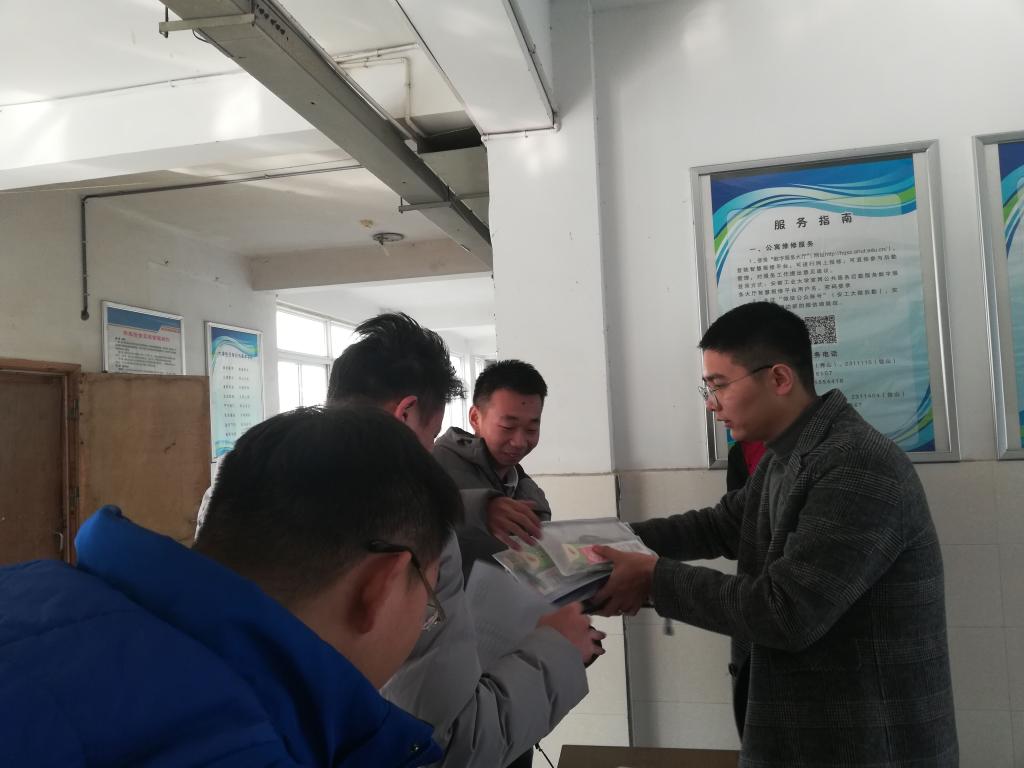 开展“爱在研途、暖心助考”考研慰问品发放活动。毕业班辅导员深入学生宿舍,给备战学生发放考研文具用品。