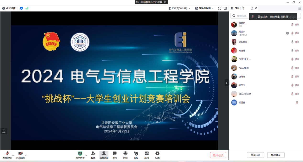 举办入围“挑战杯”校赛决赛项目线上模拟培训会,现场部署团队备赛内容,晋级项目所在项目团队负责人参加了会议,此次会议由成人动漫