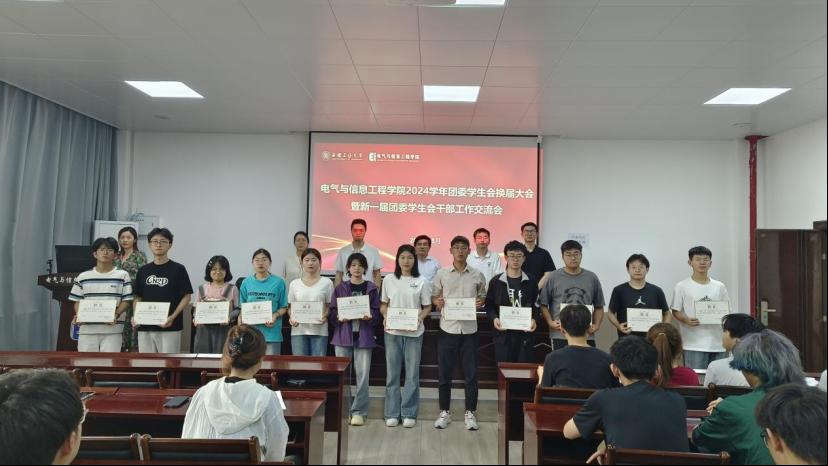 换届大会在嘹亮的国歌声中拉开帷幕。会上,汤敏带领同学们一起学习了《中国共产主义青年团纪律处分工作规则》;杨恒基介绍了院团委学生会换届的过程,并宣读了电气成人动漫