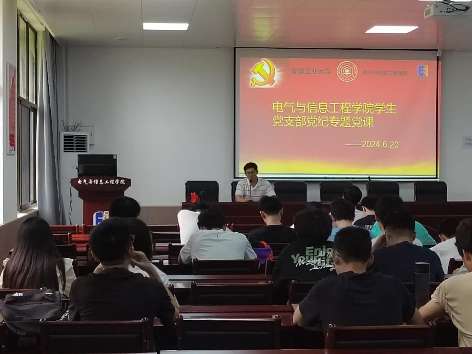 学生电气工程党支部,学生通信工程党支部在电气楼113开展党纪学习教育专题党课,由学生电气工程党支部副书记蒋安东主讲,支部全体学生党员参加。